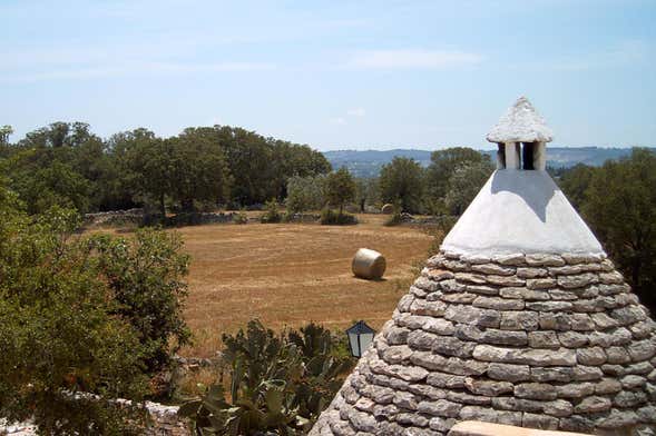 Nearby we'll find the Mother Church of San Nicola, a solemn 12th-century building constructed upon the foundations of an ancient basilica. We'll pause to admire its neoclassical façade, which was built in 1848 to replace the previous Romanesque one. After admiring the church, we'll stop at a panoramic viewpoint to gaze out at the Itria Valley and the Trulli houses and olive trees dotted across the landscape.