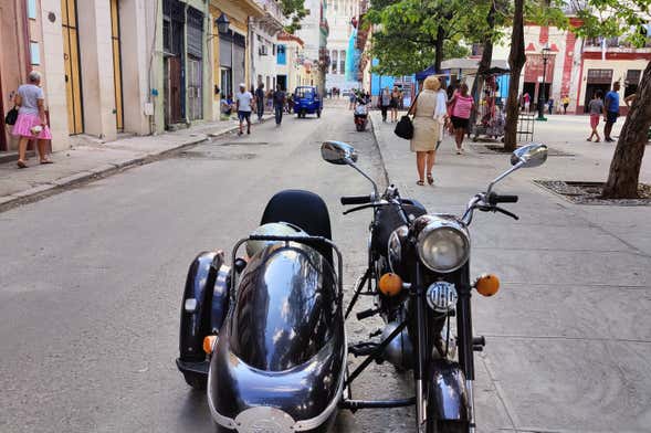 After introductions, we'll get on a classic motorcycle or a motorcycle with a sidecar, depending on your choice, and head to Hamel's Alley. There, we'll discover its murals dedicated to the Afro-Cuban culture and the religious and cultural symbiosis of the island.