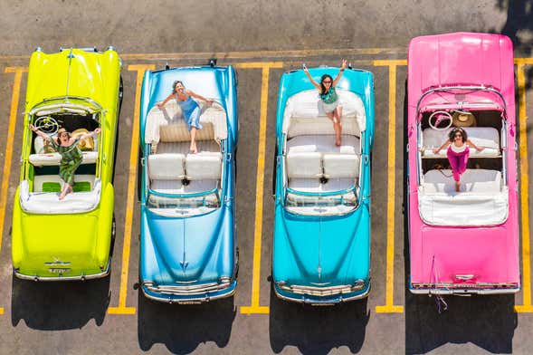 Next, we'll hop into a classic 1950s convertible, what better way to experience Havana? We'll feel the wind in our hair as we cruise along the iconic Malecón, pausing at a spectacular terrace with a panoramic view, where you'll enjoy a delicious cocktail with Havana at your feet!