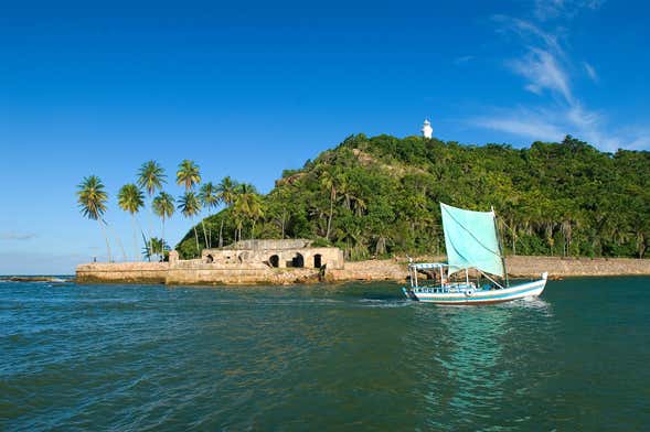 In Bom Jardin, we'll take a boat that will take us 15-20 minutes to our final destination: Morro de São Paulo. Once there, we'll set off on a sightseeing tour of the main points of this popular tourist destination, passing by the lookout point, the lighthouse, and its famous beaches full of coconut trees and crystal-clear waters.