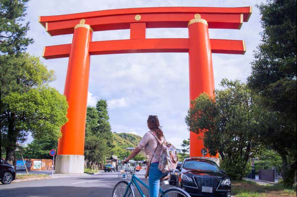 From here, we'll head to Ginkaku-ji, or the Silver Pavilion, an impressive temple with peaceful gardens. Next, we'll head to Shimogamo Shrine, one of the oldest Shinto shrines in Kyoto. The last stop on our bike tour of Kyoto will be the Imperial Palace, the former residence of the Japanese imperial family. What stories lie behind its walls? We'll tell you all about it!