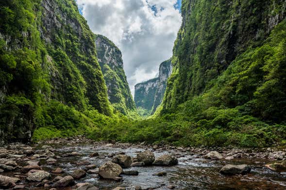 After an hour's drive, we'll arrive at the foot of the Serra do Faxinal, where the old Tropeiros Route begins. We'll discover the history of the tropeiros of Brazil as we walk the 3 kilometres (1.8 miles) of this trail along the Itaimbezinho Canyon, taking us to the Elbow viewpoint.