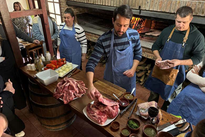 With our palettes opened, we'll light the embers and prepare the cuts of meat along with the secret blend of spices that give Uruguayan cuisine its unique flavor. As we go through this ritual, you'll learn how to control cooking times, manage firewood, and find the ideal grilling temperature—every step has its own technique!