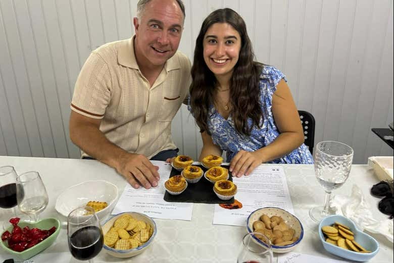 After taking them out of the oven, we'll try the pastéis de nata that we've created and serve them with Port wine, juice, or mineral water. You can take any leftover pastéis de nata home in a box.