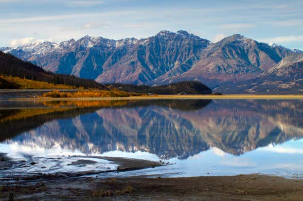 On this summer route, we'll see Kathleen Lake and take a short hike uphill to Rock Glacier, where we'll have stunning views of Lake Dezadeash and the surrounding mountains.