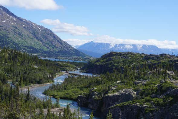For two hours we'll hike around the volcanic rocks that make up the Miles Canyon and enjoy the area's amazing views full of forests and trails brightened with the turquoise colour of the Yukon River.