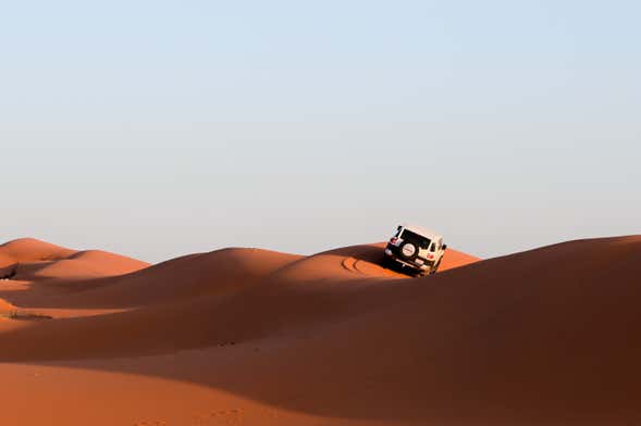 Con la ayuda del guía, pondremos a punto los neumáticos del todoterreno y comenzaremos a surcar las dunas a toda velocidad. Durante toda la travesía disfrutaréis de saltos, giros, derrapes y desniveles que dispararán vuestra adrenalina. ¡Y la aventura no termina aquí!