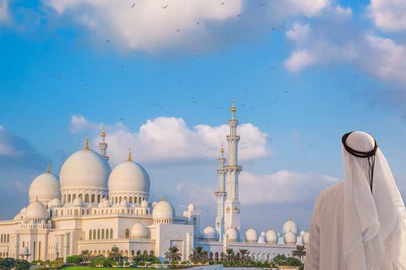 Pasaremos a recogeros por vuestro hotel entre las 9:00 y las 9:30 horas y nos digiriemos a la mezquita Sheikh Zayed, donde daremos comienzo a esta visita guiada por Abu Dhabi. ¿Sabíais que, por sus dimensiones, es conocida como la Gran Mezquita? ¡Tiene capacidad para más de 40.000 personas!