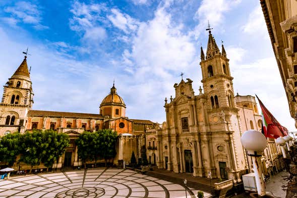Entraremos en el Duomo de Acireale para ver los frescos que decoran sus columnas y techos. ¡Os dejará sin habla! A la salida veremos los dos campanarios de esta iglesia y el vecino Palazzo Comunale.
