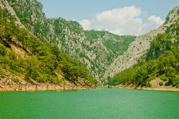 Nos adentraremos en este desfiladero de aguas esmeraldas mientras admiramos los imponentes montes Tauro con sus laderas repletas de cedros, tejos, pinos y robles. ¿Sabíais que este pantano se alimenta del río Manavgat? Nace de varios manantiales situados a 1350 metros, que son los que le dan el color a su cauce.