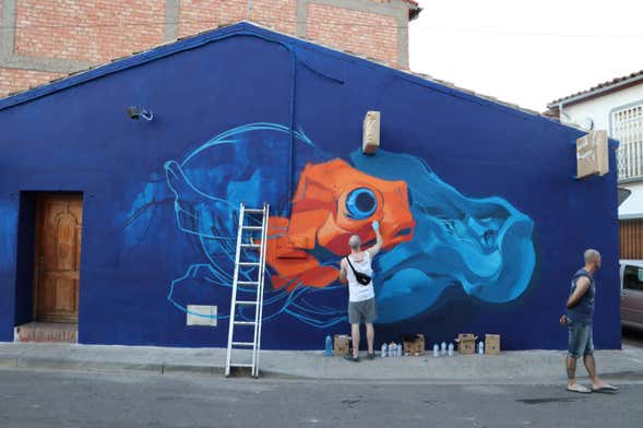 Un colorido pez en la entrada de una panadería, una singular mirada en una esquina, una abuela con su nieta en otro edificio… ¡Ningún mural es igual a otro! Además, aprovecharemos este tour por Alfamén para contaros la historia, costumbres y productos típicos de este pueblo de origen árabe.