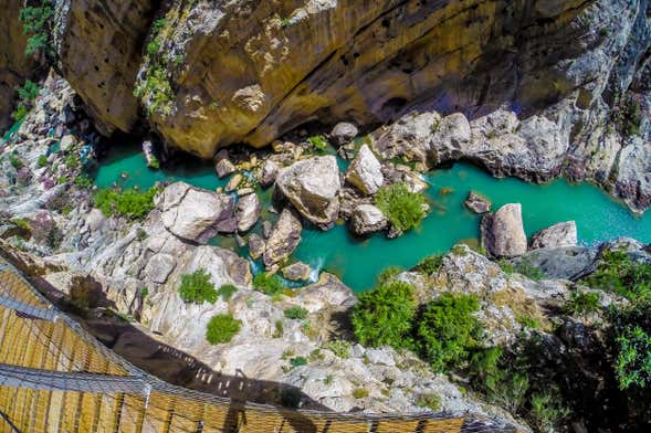 Bajaremos del vehículo y, tras una breve caminata entre pinos y vegetación mediterránea, llegaremos a nuestro destino. Nos colocaremos los cascos de seguridad y empezaremos a recorrer las pasarelas del Caminito del Rey. ¡Una visita que no olvidaréis jamás!