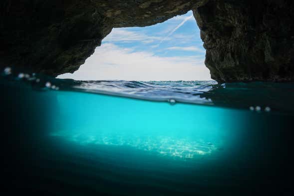 Disfrutaremos de una plácida navegación admirando los acantilados de la costa mediterránea hasta llegar a la entrada de la cueva del Lobo Marino. ¿Sabíais que se llama así por los mamíferos acuáticos que habitaban esta gruta tiempo atrás? Aunque las leyendas también cuentan que este rincón oculto era el hogar de un monstruo creado por el mismísimo dios Neptuno.