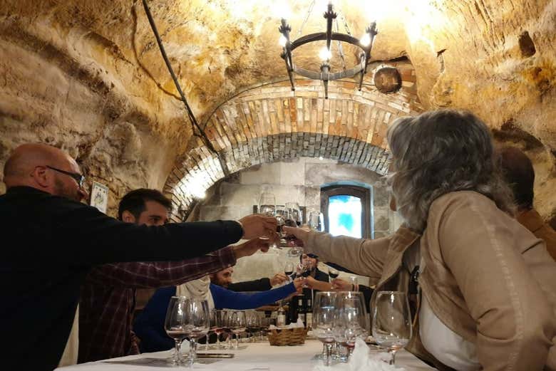 Al llegar a la vinoteca, conoceremos la primera bodega, un lugar perfecto para aprender cómo se elaboraba el vino en estos lugares tan especiales. Después, descenderemos por unas escaleras que nos llevarán hasta las bodegas subterráneas y nos remontaremos al siglo XV para seguir aprendiendo sobre las particularidades del vino en estas galerías.