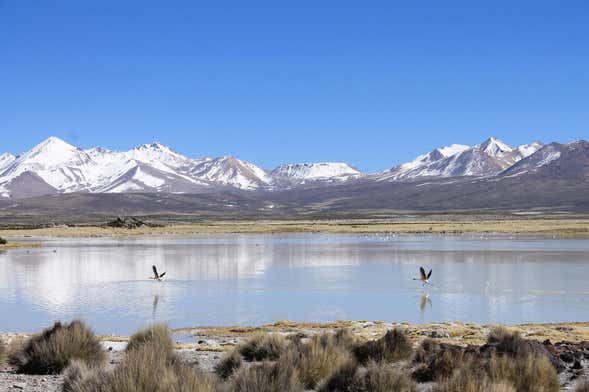 Tras el desayuno en Socoroma, iremos al mirador de Putre para disfrutar de unas magníficas vistas de la localidad y dar un breve paseo junto a sus cuevas. La siguiente parada tendrá lugar en el mirador de Chucuyo: un privilegiado punto desde el que veremos los volcanes y lagunas que se extienden por el inmenso altiplano chileno.
