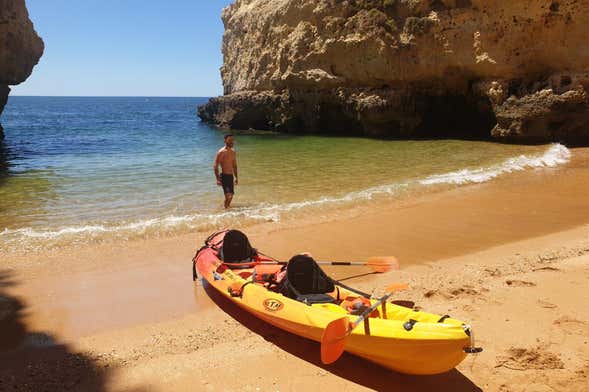 Alquilaréis los kayaks en la playa de Armação de Pêra, donde os estarán esperando los instructores. Después de una breve introducción sobre cómo navegar, os equiparéis para realizar la actividad. Chaleco puesto y remos en mano, subiréis a las embarcaciones para comenzar el paseo.