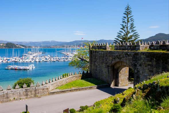 En primer lugar, daremos un paseo en torno al monte Boi. En esta colina veremos los gruesos muros y almenas del castillo de Monterreal, una imponente fortaleza medieval construida para proteger este punto estratégico de la costa gallega. El recinto alberga además un hotel monumental, el Parador del Conde de Gondomar.