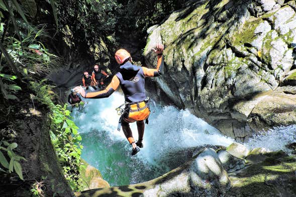 Tras 45 minutos de viaje, llegaremos a nuestro destino. Una vez allí, nos adentraremos en un barranco con cinco cascadas desde los 3 hasta los 20 metros de altura. Durante esta ruta tendremos que deslizarnos por tirolinas, hacer rápel, nadar, bucear y, sobre todo, ¡saltar!