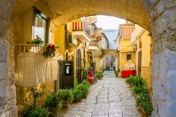 La visita guiada por Bari también nos llevará al milenario Castillo, uno de los principales símbolos de la ciudad. Caminaremos por las calles más estrechas para descubrir una de las tradiciones más arraigadas: la elaboración de pasta ¡en plena calle! Las señoras locales se sientan en la puerta de sus casas para amasar los tradicionales orecchiette.