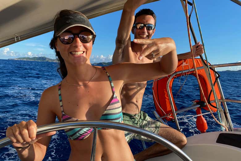 ¿Queréis ser los capitanes por un rato?, os enseñaremos una por una las técnicas de manejo del velero durante la navegación. A mediodía, tomaremos un delicioso almuerzo a bordo compuesto por un plato típico y un postre. Tendréis a vuestra disposición ponche de frutas, ponche de coco, de mango, entre otras muchas bebidas. ¡Qué agasajo!
