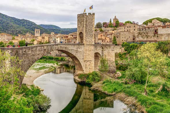 Cruzaremos el monumental puente románico del siglo XI para adentrarnos en el centro histórico de Besalú, un gran ejemplo de conservación del patrimonio cultural. Sus calles preservan aún el mismo entramado y construcción que durante la época medieval, haciendo que un paseo por ellas se convierta en un viaje al pasado.