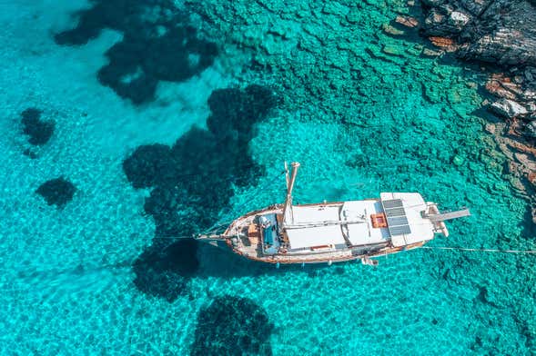 A la hora indicada os recogeremos en vuestro hotel de Bodrum y nos desplazaremos hasta el puerto de la ciudad. Una vez en el muelle, emprenderemos un paseo en barco por la Costa Turquesa. Esta zona, situada en el litoral meridional de Turquía, se caracteriza por unos hermosos paisajes mediterráneos que os cautivarán de principio a fin.