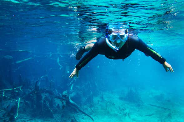 Os llamarán la atención las cristalinas aguas del río, una transparencia muy habitual en las corrientes fluviales de Bonito debido a la alta concentración de caliza y el efecto que produce este mineral con el reflejo de los rayos de sol. Os explicaremos todos los detalles mientras nadamos río abajo admirando la flora y la fauna acuática.