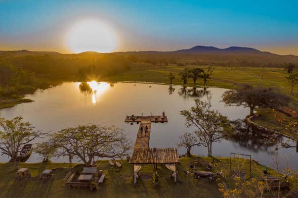 Lo primero que llamará vuestra atención es el lago ubicado junto a la Fazenda Ceita Corê. Aquí subiremos a bordo de un bote que nos llevará de travesía por estas aguas cristalinas para ver de cerca el nacimiento del río Chapena. ¡No pararéis de hacer fotos de esta estampa!