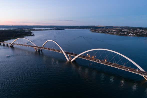 Admiraremos el Palacio de la Alvorada, la residencia oficial del presidente de Brasil; el santuario Don Bosco, construido a orillas del lago; y el famoso puente JK, uno de los emblemas de la ciudad.