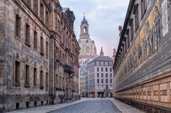 Pasaremos también por la catedral Hofkirche, la mayor construcción religiosa de todo el estado y erigida con piedra arenisca. ¡Alzad la vista, su torre mide más de 80 metros! A continuación, contemplaremos el mural del Desfile de los Príncipes, formado por 24000 azulejos y considerado como uno de los más grandes del mundo.