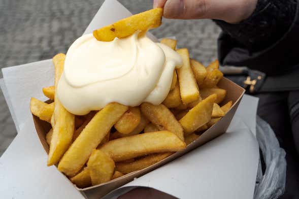 Durante este paseo guiado en español conoceremos algunas curiosidades de la gastronomía belga degustando algunos de los más populares sabores de Brujas. Podría parecer un mero plato de comida rápida. Nada más lejos de la realidad: las patatas fritas al estilo flamenco son toda una institución en la ciudad. Las probaremos en el puesto habilitado en el Frietmuseum (Museo de las Patatas Fritas de Brujas), ubicado en pleno centro histórico. No solo se trata de comer “belgian fries” (que no “french fries”), sino de saborearlas a través de sus múltiples salsas. ¡Para los belgas su elaboración supone todo un ritual!