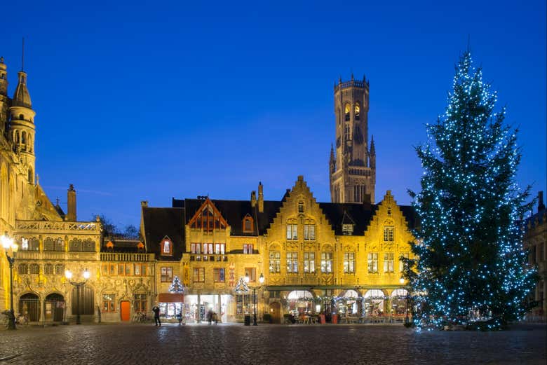 A continuación, nos dirigiremos hacia la emblemática Grote Markt, en la que veremos el campanario Belfort y visitaremos el principal mercadillo navideño de Brujas. La iluminación de las Casas Gremiales de la plaza hace de esta explanada uno de los lugares más fotografiados de la ciudad.