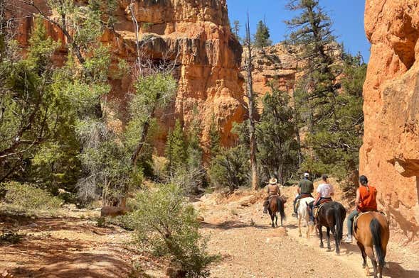 Esta opción os llevará a conocer la parte más importante del Parque Nacional del Cañón Bryce. En primer lugar, cabalgaremos a través del Bosque Nacional Dixie e iremos al borde de Water Canyon, el primer cañón del parque.
