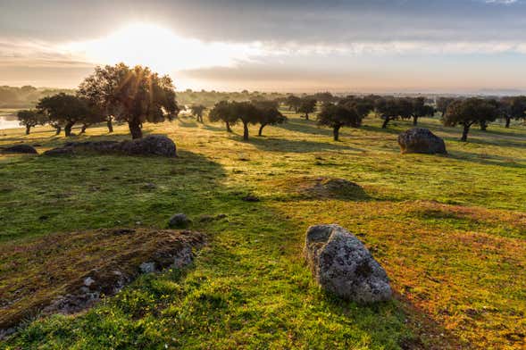 Saliendo desde el centro de Cáceres, nos dirigiremos hacia las poblaciones de Casar de Cáceres y Garrovillas. Subidos en un 4x4, recorreremos las grandes extensiones de cañadas y dehesas de Extremadura donde habitan especies protegidas y se desarrollan actividades ganaderas tradicionales.