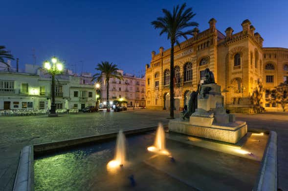 Cae la noche sobre Cádiz y sus farolas empiezan a iluminar las calles. Nos reuniremos en la plaza de San Juan de Dios de Cádiz para comenzar el free tour nocturno por el centro histórico de Cádiz. Aquí conoceremos el origen de la ciudad y su relación con el comercio marítimo.