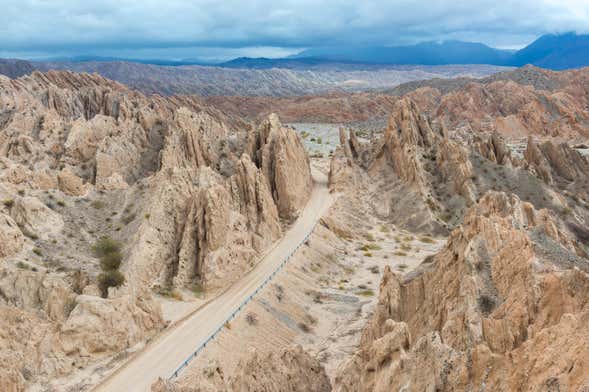 La excursión nos llevará a través de la famosa Ruta Nacional 40. ¿Sabíais que esta extensa vía cruza Argentina de norte a sur? Durante el camino, pararemos en algunos miradores que nos permitirán contemplar desde diferentes perspectivas las curiosas formaciones rocosas de la Quebrada de las Flechas.