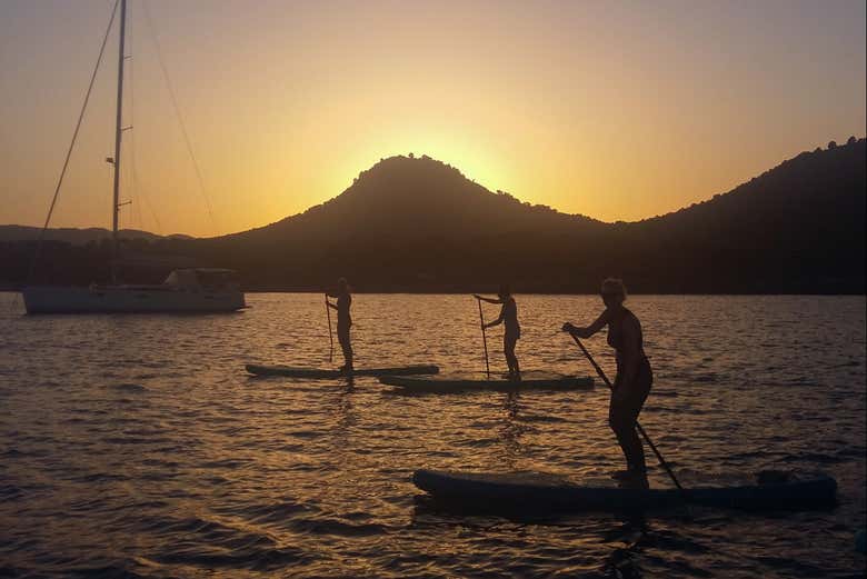 Remaremos tranquilamente hasta la bahía de Cala Agulla y continuaremos con nuestras tablas de paddle surf hacia el este para llegar a los acantilados de Cala Rajada. Además, el color que adquieren en este momento del día los convierten en un paisaje que no olvidaréis jamás.