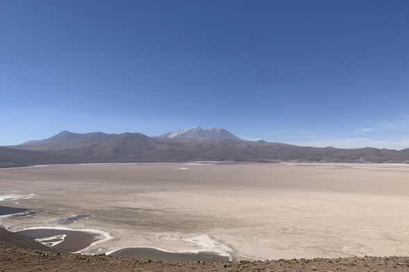 Desde Calama realizaremos un trayecto de unos 190 kilómetros con vistas a los volcanes San Pedro, San Pablo y Ollagüe. Una vez lleguemos al salar de Ascotán, nos maravillaremos ante esta gran costra de yeso y halita. Además, este paisaje está formado por lagunas alimentadas por vertientes del salar durante los meses húmedos. ¡Os contaremos numerosas curiosidades de este entorno!