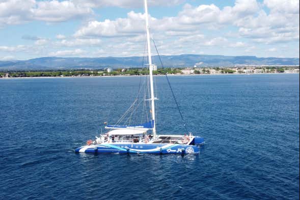 A la hora indicada, nos reuniremos en el puerto de Cambrils. Allí nos estará esperando el catamarán a vela y, una vez estemos a bordo, comenzaremos a navegar por el Mediterráneo.