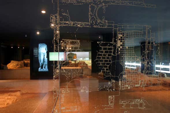 Con la entrada podréis visitar todo el complejo, compuesto por un patio porticado de entrada, un aula central donde se situaría la imagen del emperador. A los lados dos ninfeos con posibles fuentes, dos estancias relacionadas con las actividades de culto, y por último, dos tiendas independientes del edificio.
