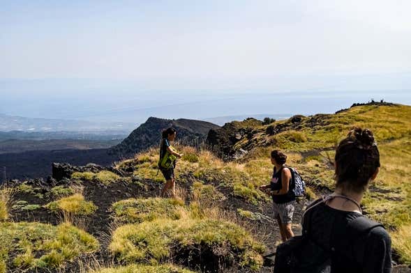 Durante el recorrido, atravesaremos bosques de pinos, veremos antiguas coladas de lava solidificadas y disfrutaremos de unas vistas inigualables de la costa de Sicilia y el mar Jónico.