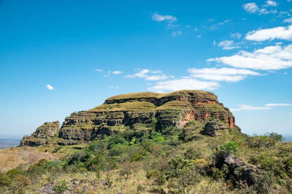Poco a poco, iremos viendo a lo lejos la cima del Morro de São Jerônimo, que impresiona por ser el punto más elevado del Parque Nacional Chapada dos Guimarães. ¿Sabíais que su nombre original es Bokodoriri? Esta palabra de los indígenas significa armadillo gigante. ¡Atentos! Dicen que mirando desde la llanura es posible ver cómo presenta una peculiar forma de armadillo.