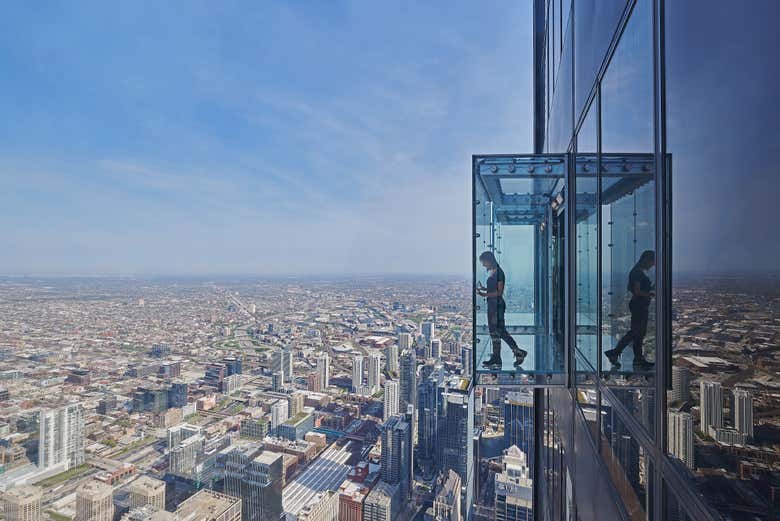 Para subir hasta la planta 103, deberéis coger el ascensor del Skydeck Chicago, que alcanza una velocidad de 480 metros por minuto. ¡Llegaréis en tan solo 60 segundos! Una vez arriba, encontraréis cuatro balcones con suelo de cristal que sobresalen de la fachada. Sin duda, la mejor manera de contemplar la ciudad en 360 grados.