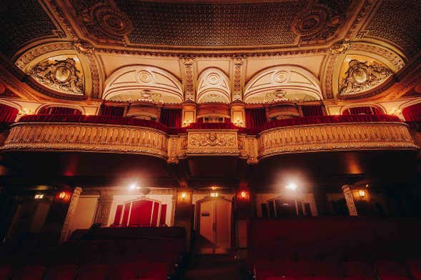 Durante una hora de visita por el Chicago Theatre, conoceremos su historia al tiempo que recorremos todos sus rincones: pasearemos por su elegante hall principal, subiremos por la lujosa escalinata y os sorprenderéis con el tamaño y acústica del auditorio, así como con los camerinos en los que los artistas aguardan para iniciar su show.