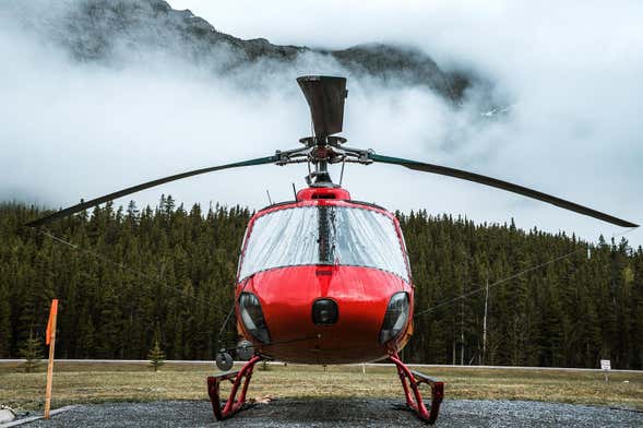 A la hora acordada nos reuniremos en David Thompson Hayway y subiremos a un helicóptero para disfrutar de un increíble vuelo sobre las Montañas Rocosas de Canadá. ¿Estáis preparados?