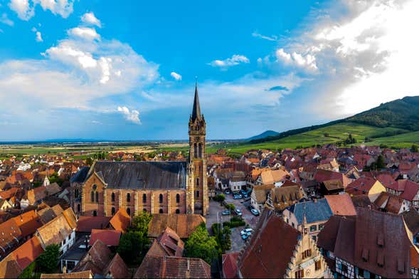 ¿Siguiente parada? ¡Hunawihr! Recorriendo este pequeño pueblo alsaciano, sentiremos que viajamos en el tiempo. Pasaremos por su ayuntamiento renacentista, su plaza principal y su iglesia medieval. ¿Sabéis de dónde viene el nombre de la localidad? Lo descubriremos a lo largo del tour, además de muchas curiosidades más.