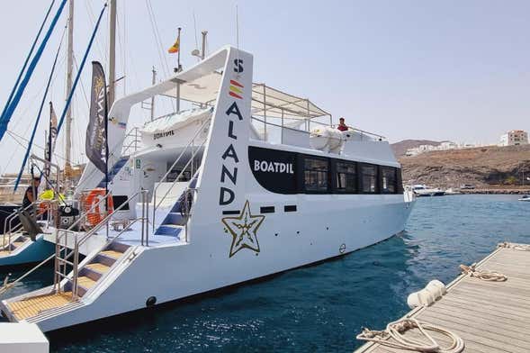 A bordo de la embarcación navegaremos por el sur de la segunda isla más grande de Canarias admirando sus panorámicas costeras. Podréis disfrutar de las vistas desde las hamacas de la cubierta del barco o desde su acogedor lounge.
