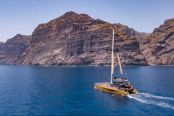 Navegaremos en busca de cetáceos, e iremos conociendo las características de las especies marinas que nos vamos encontrando durante el paseo. Ballenas piloto, delfines mulares y delfines moteados se convertirán en nuestros nuevos amigos durante la travesía por los acantilados de Los Gigantes. ¡No os olvidéis de saludarlos!