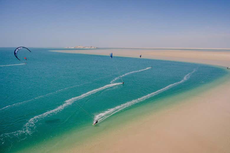 Durante dos horas, os convertiréis en casi unos expertos del kitesurfing practicando en las aguas poco profundas de este precioso enclave de Dajla. Estaréis rodeados de un gran contraste entre las aguas azules del mar y las dunas de arena dorada.