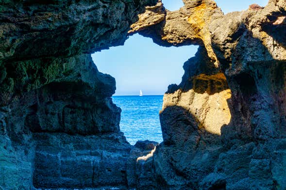 En la travesía pasaremos por la Cova Tallada, un auténtico tesoro escondido de la Reserva Marina del Cabo de San Antonio, un área protegida de gran valor ecológico. Nos acercaremos a la cueva sin llegar a entrar en ella para ver de cerca la asombrosa belleza de sus acantilados.